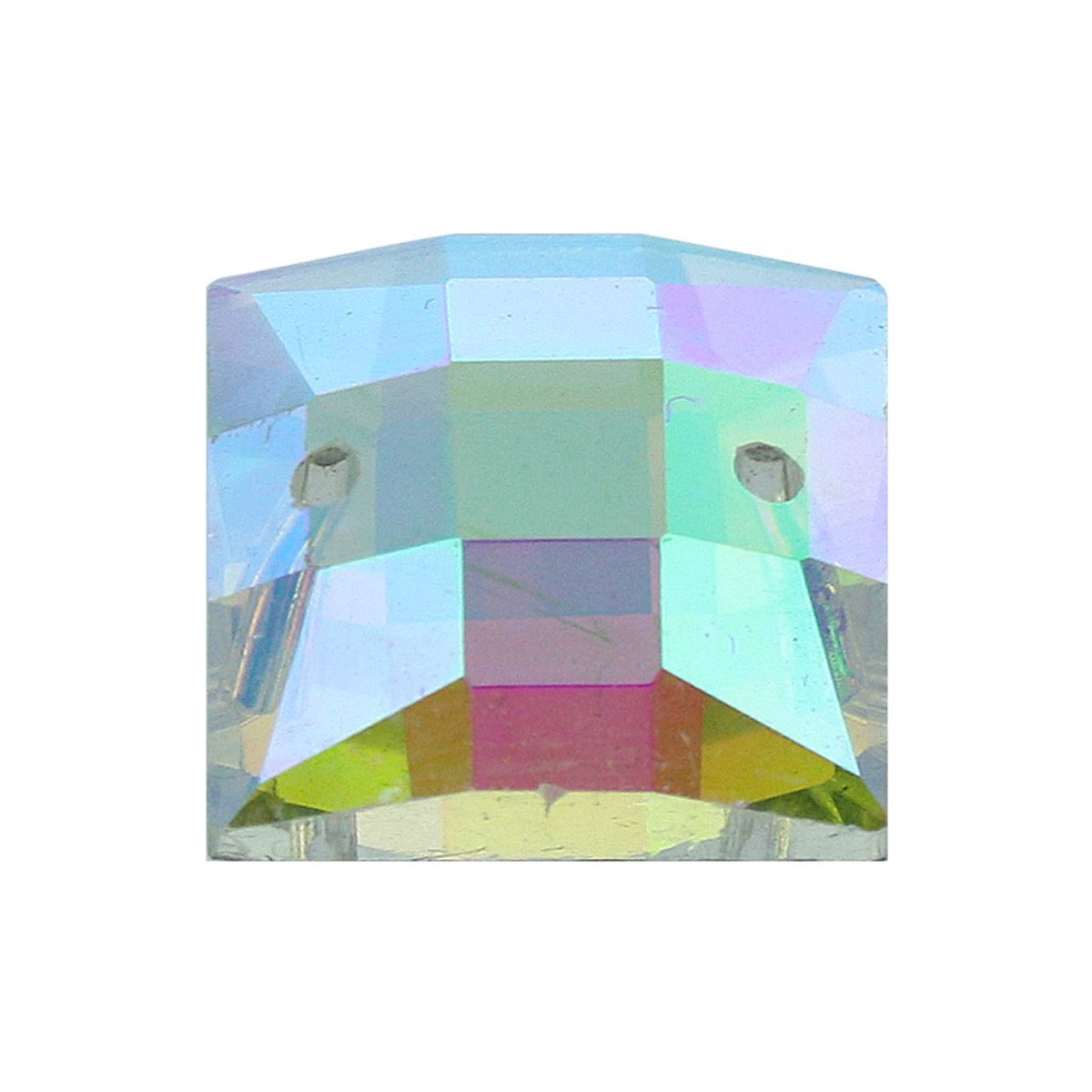 Adorno cristal tornasol forma cuadrada acabado facetado con orificio en cada extremo Ideales para que realices accesorios de joyería pulseras y collares. Da un toque elegante a tus prendas como zapatos o vestidos