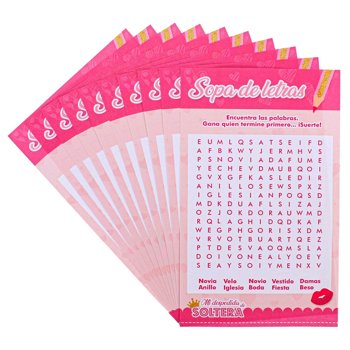 Juego de despedida de soltera, sopa de letras Se usa para jugar en despedida de soltera
