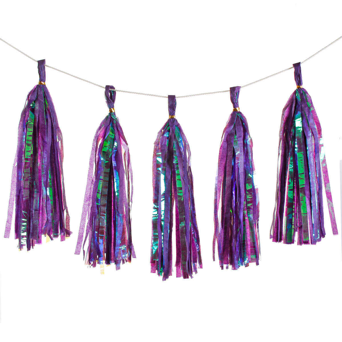 Guía con 5 borlas acabado iris Ideal para decorar mesas de dulces, paredes, o para escenarios fotograficos