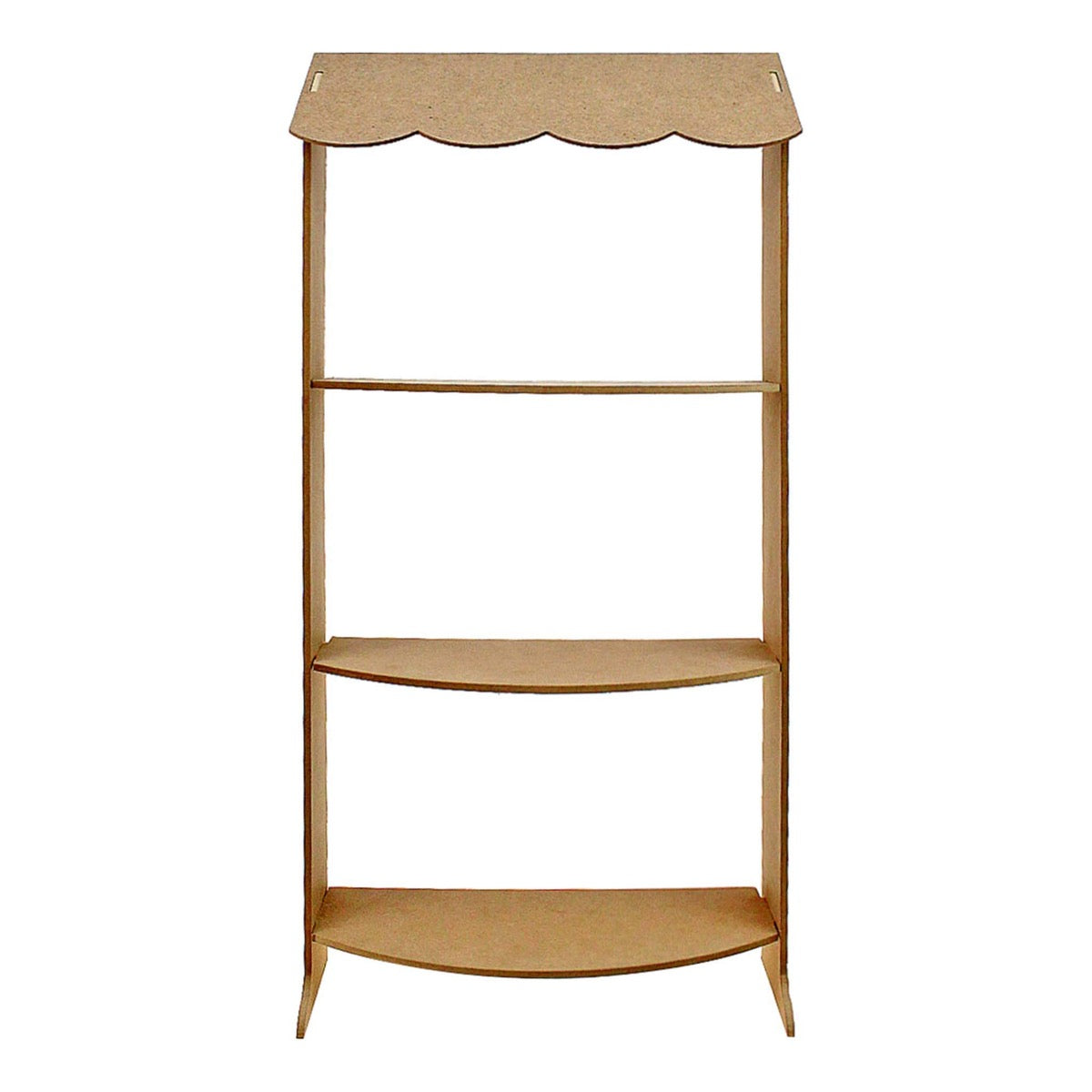Base modelo tipo estante con medio techo diseño de ondas, cuenta con tres niveles en media luna Es ideal para usarse como despachador de dulces, en eventos con temáticas. También personalizalo y dale un toque a tu negocio en aparadores, estanterias y vitrinas