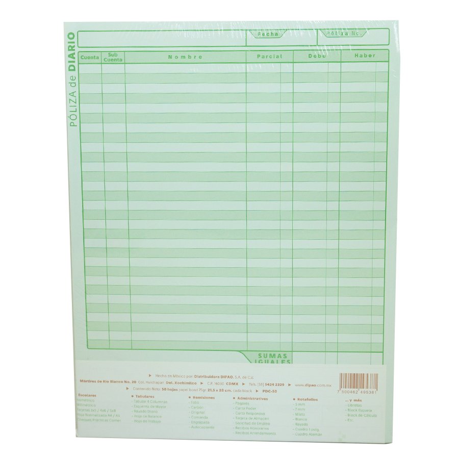 BLOCK POLIZA DE DIARIO DIPAO T/CARTA PAQ/3 BLOCKS C/50 H