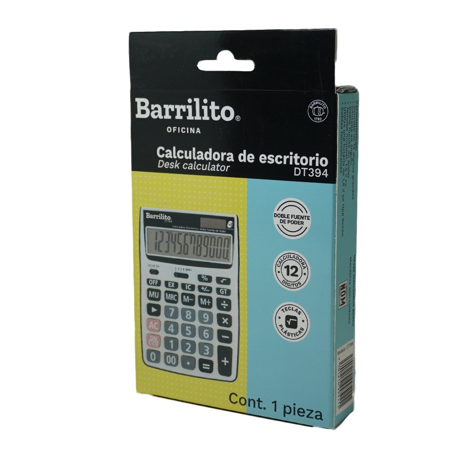 La Calculadora de Escritorio Barrilito DT394 es una herramienta diseñada para facilitar cálculos en entornos laborales y académicos. Cuenta con una pantalla de 12 dígitos grandes, con una altura de 18.7 mm, que permite una visualización clara y precisa de los resultados.