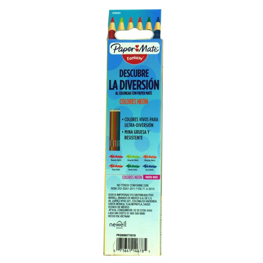 Los lápices de colores Paper Mate Fantasy Neon de 6 unidades están diseñados para ofrecer colores vibrantes y de alta calidad. Cada lápiz cuenta con una mina gruesa que resiste los quiebres, facilitando una aplicación suave y uniforme del color.