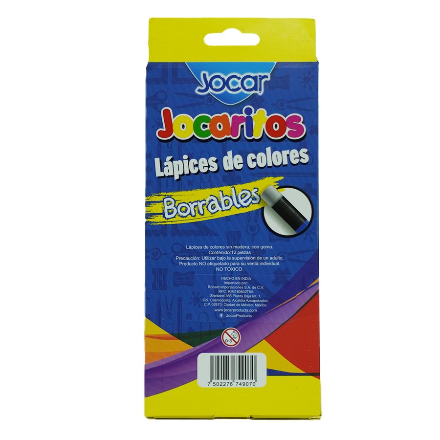 Los lápices de colores Jocar Triangulares Borrables de 12 unidades (modelo 4907) son ideales para actividades escolares y artísticas. Su diseño triangular facilita un agarre ergonómico, reduciendo la fatiga durante su uso.