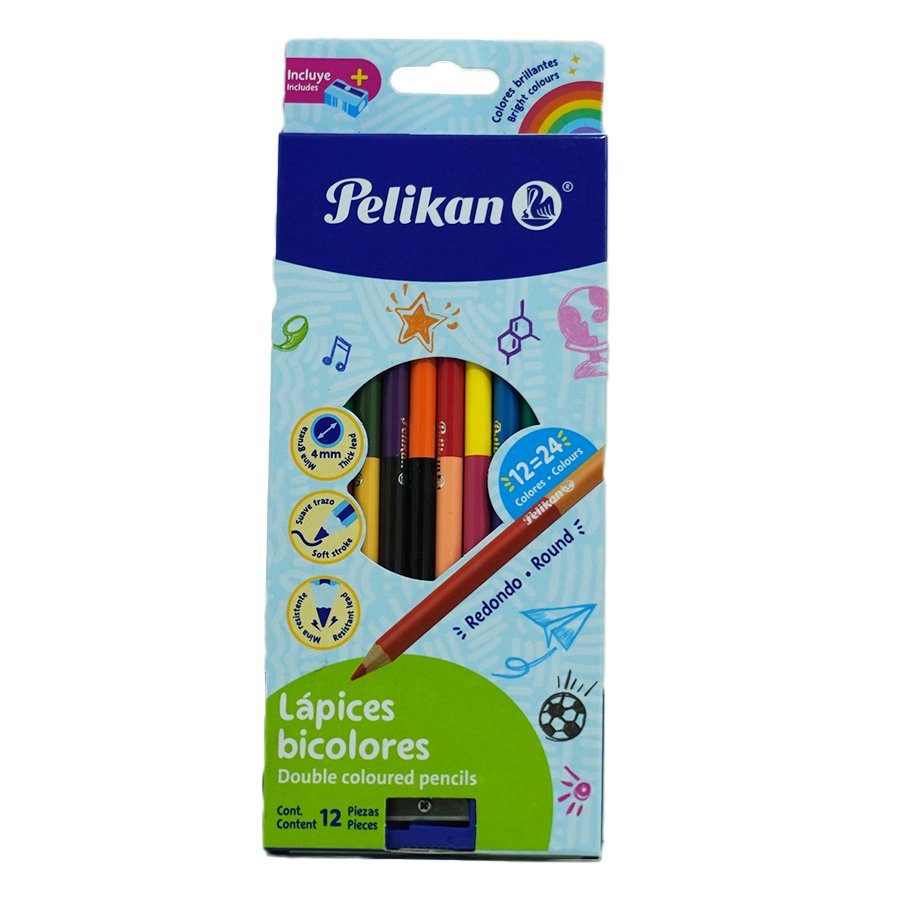 Los lápices de colores Pelikan Bicolor en presentación de 12 unidades ofrecen 24 colores diferentes, ya que cada lápiz tiene dos tonos distintos. Están diseñados con una mina resistente al quiebre y suave, lo que permite un coloreado rápido, fácil y uniforme.