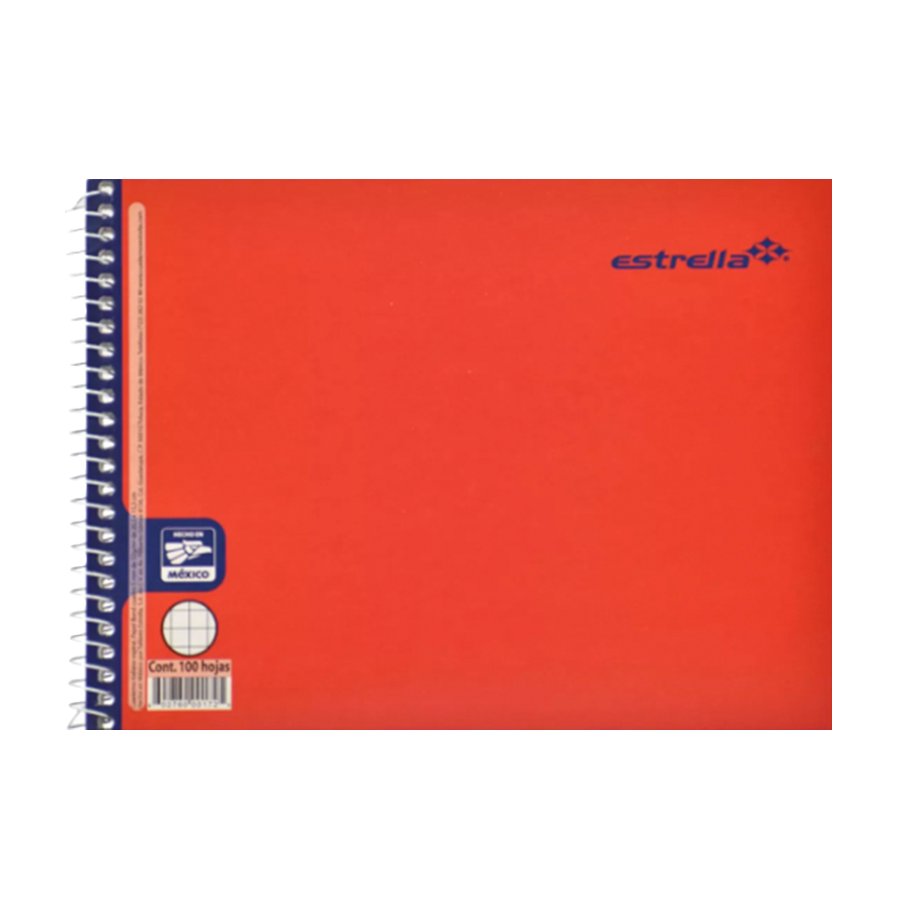 Cuaderno Italiano Estrella C-5 con 100 hojas, rayado cuadro chico. Disponible cosido o con espiral, con portada plástica laminada que no requiere forro. Ideal para escuela o trabajo.