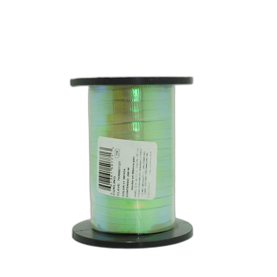 Curling Nacarado 200 mt (703) Janel 21 Menta: Cinta decorativa larga de 200 metros en color menta con acabado nacarado, ideal para envolturas, manualidades y decoraciones festivas.