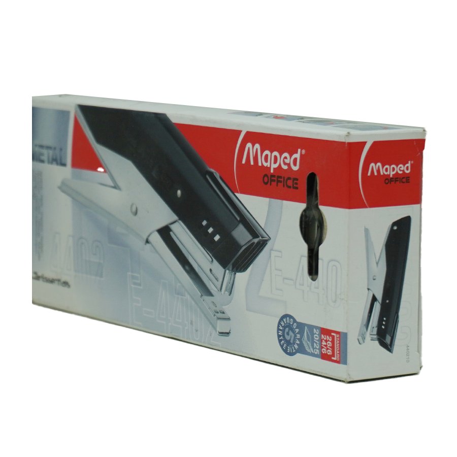 La Engrapadora Pinza Essentials Maped 440210 es una herramienta de oficina diseñada para unir documentos de manera eficiente. Fabricada con un cuerpo metálico y partes plásticas, ofrece durabilidad y comodidad en su uso