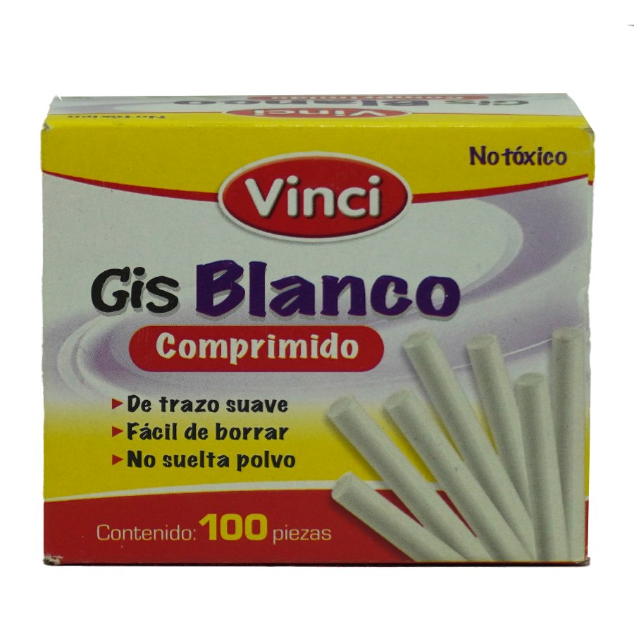 Gis Comprimido C/100 Color Vinci: Paquete con 100 gises comprimidos de colores surtidos, ideales para uso escolar y artístico, con una textura firme y colores intensos.