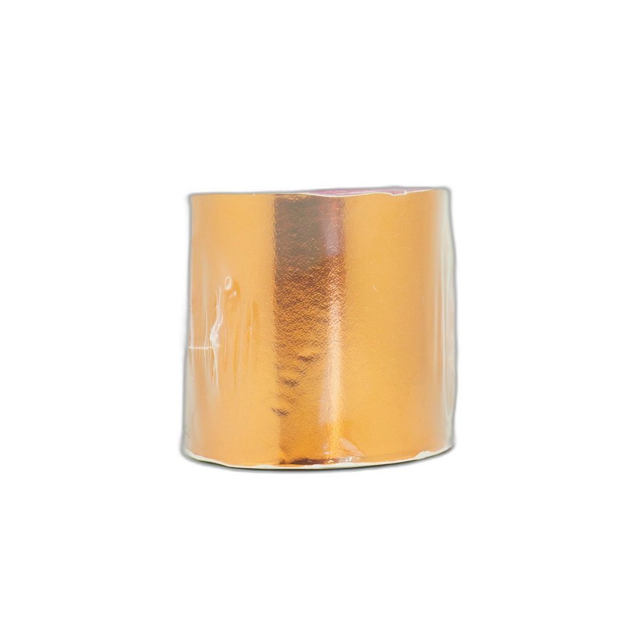 Listón Celosa metálico #22 color naranja (código 16), ancho de aproximadamente 7 cm x 50 m, acabado brillante metálico ideal para moños, envolturas de regalo y decoración festiva, material resistente, no tóxico y fácil de manejar.