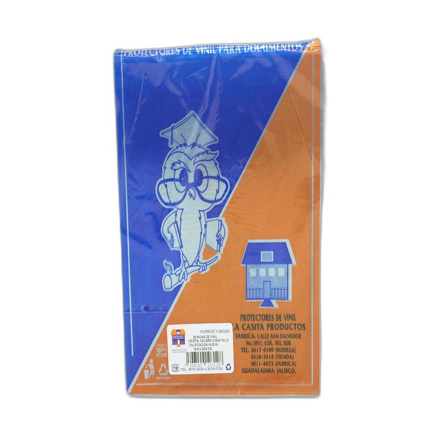 La mica pegada #9 de La Casita es una funda térmica prepegada de vinil calibre 5, diseñada para proteger documentos de tamaño 10.4 × 14.9 cm (aproximadamente tamaño tarjetón).