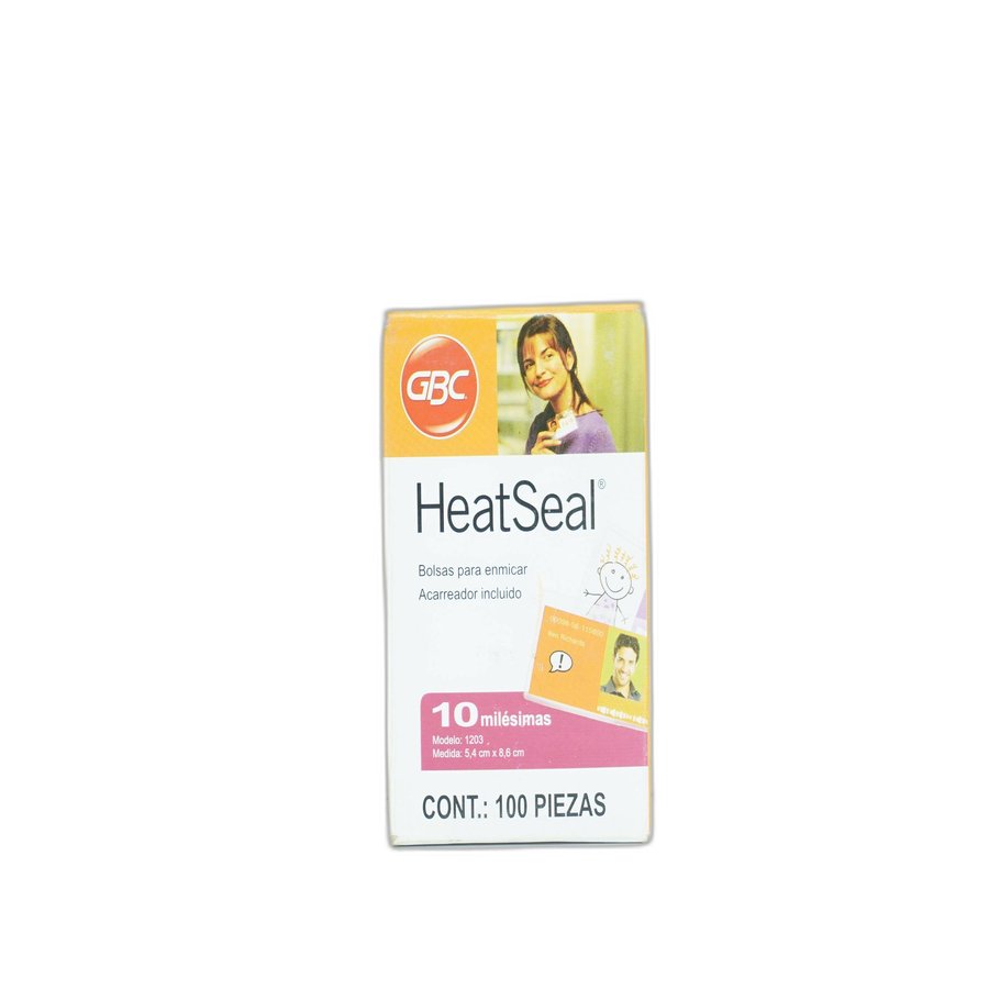 Mica térmica talla 5.4 × 8.5 cm modelo GBC 1203 (10 mil) c/100: paquete con 100 fundas rígidas y transparentes de aproximadamente 5.4 cm × 8.5 cm (tamaño credencial o tarjeta), de 10 milésimas de pulgada (~250 µm).