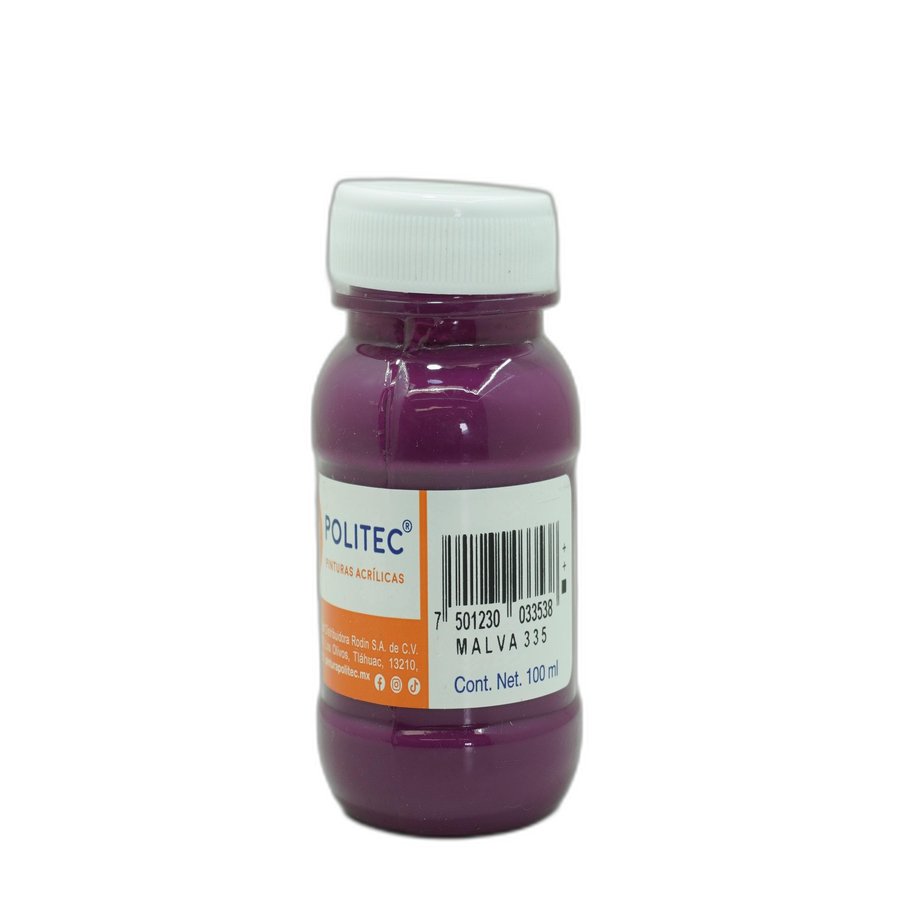 Pintura acrílica Politec Verde Malva (Rodin) No. 335, formato 100 ml, en presentaciones sueltas o en caja con 6 piezas, base agua no tóxica, con acabado mate, alta cobertura, secado rápido y excelente adherencia sobre superficies.