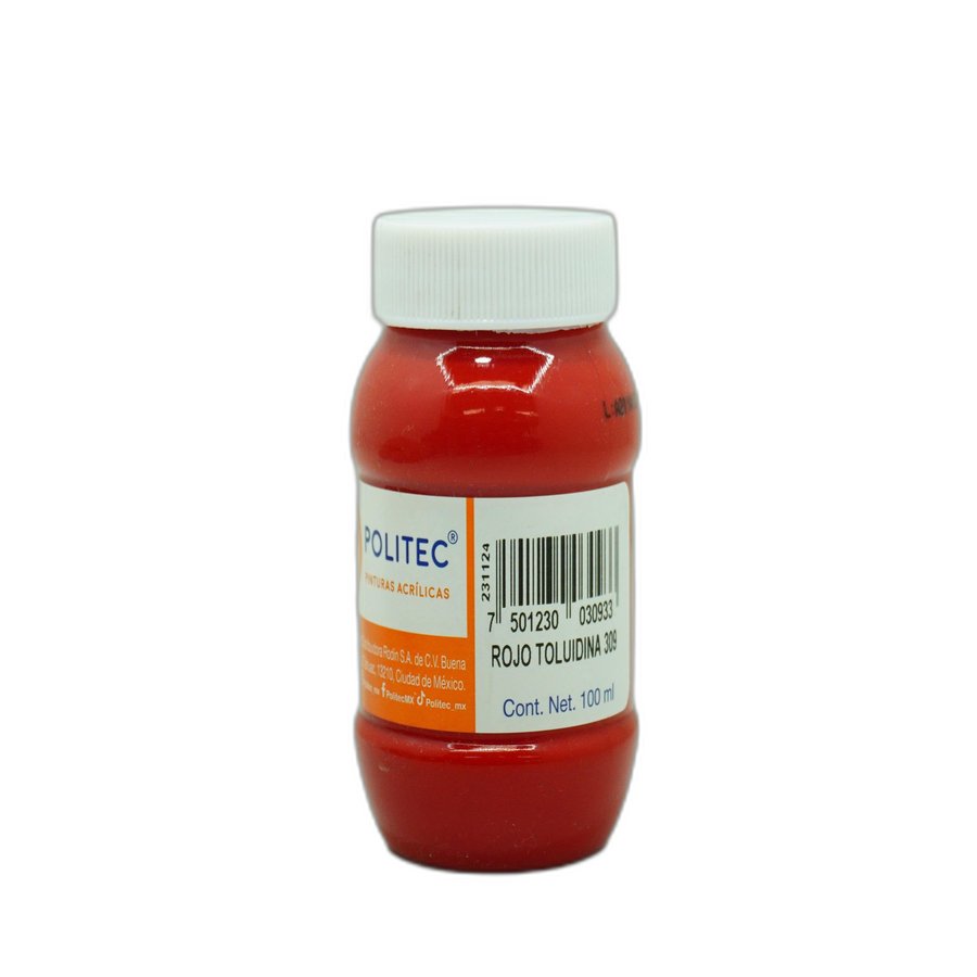 La Pintura Acrílica Politec 100 ml Rodin Rojo Toluidina 309 es una pintura de base acuosa, no tóxica, con acabado mate, ideal para manualidades, arte escolar y decoración en superficies.