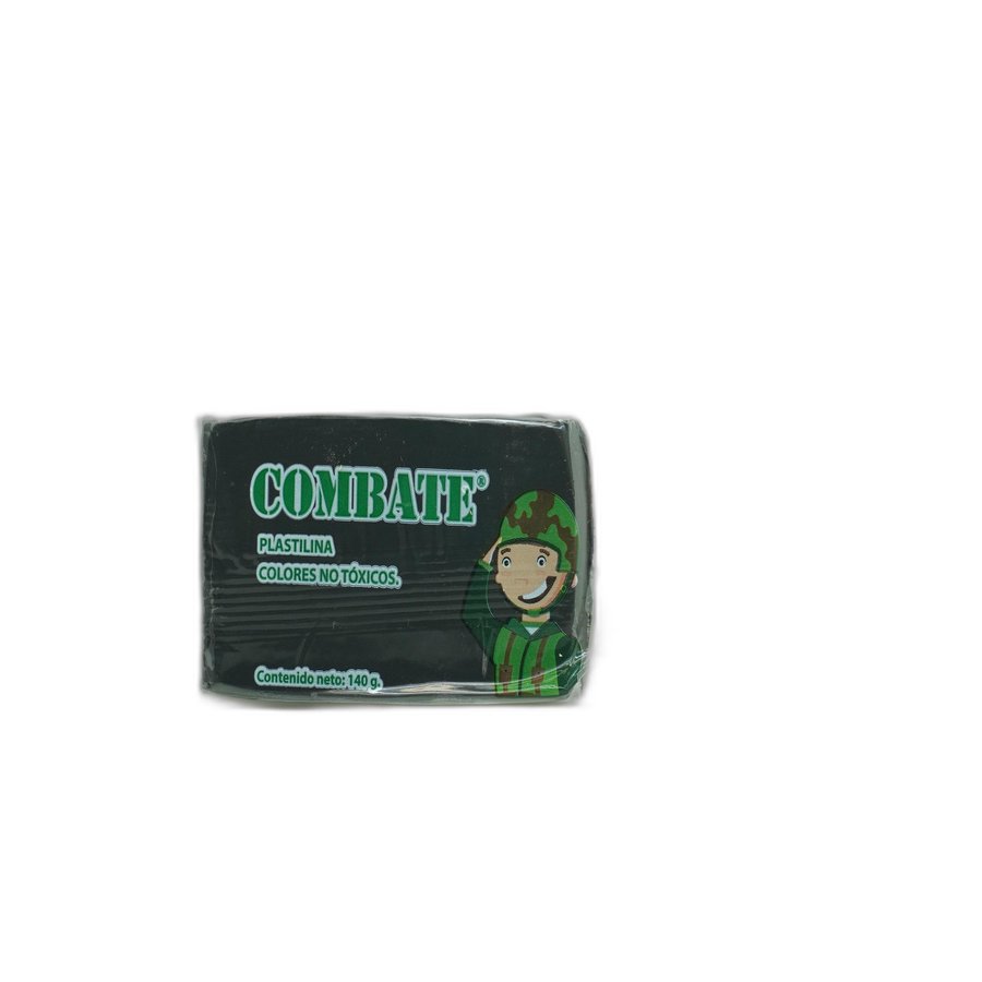 La plastilina Combate en barra de color negro es una masa moldeable de 140 gramos, ideal para actividades creativas y educativas. Su textura suave facilita el modelado y es apta para niños.